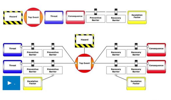 La metodología BowTie, consiste en la evaluación de riesgos de manera que se puede utilizar para analizar y demostrar relaciones causales en escenarios de alto riesgo de las actividades de mayor riesgo viendo exactamente el origen y la barrera que se está apoyando. BowTie consiste en un diagrama que visualiza en una imagen comprensible el riesgo que se está gestionando.